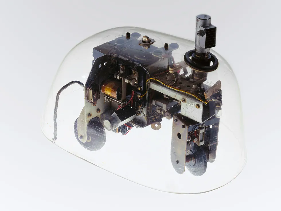 1948〜49年に神経生理学者のウィリアム・グレイ・ウォルターが作った「ロボット亀(Elsie/Elmer)」である。